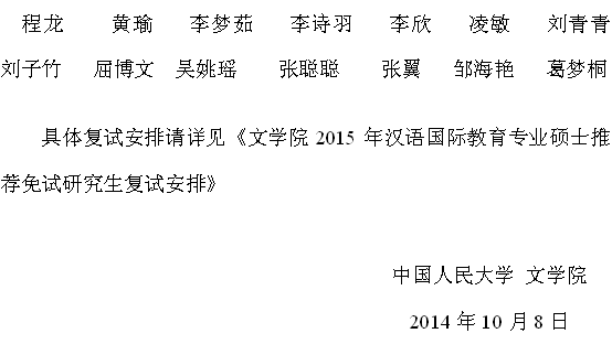 亚洲a片 2015年汉语国际教育专业硕士推荐免试研究生复试名单