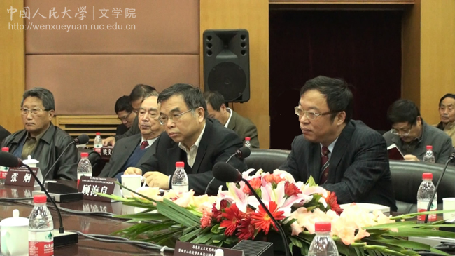 马俊杰副校长在聆听大会发言,其右2为教育部党组成员顾海良,右3为中国作协原副主席张炯,右4为《人民日报》海外版原总编辑丁振海