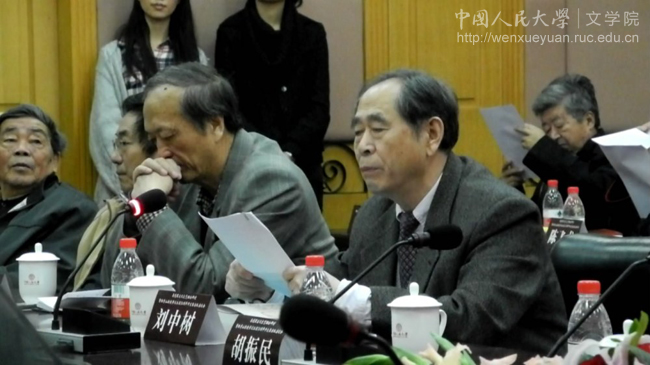 中央候补委员、全国政协教科文卫体委员会副主任胡振民在发言。右为中国文联原副主席李准