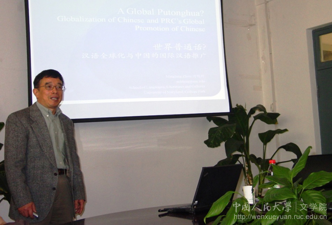 针对当前民众非常关注且国内语言学界倍感困扰的热点问题,3月16日下午,美国马里兰大学副教授、中文部主任、东亚研究中心主任周明朗的报告“世界普通话?汉语全球化与中国的国际汉语推广”帮我们打开了更多的思路。讲座由亚洲a片 对外汉语教学中心张璐博士主持,二十余位老师和几十名研究生听取报告并参与讨论,大家济济一堂,气氛非常热烈。