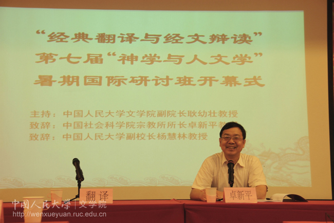 中国社会科学院的卓新平教授致本届暑期国际研讨班开幕词并主持讲座,杨慧林教授致闭幕词。暑期研讨班结束之际,杨慧林教授和耿幼壮教授祝贺本届暑期研讨班圆满成功,并希望和各地同仁在下届研讨班再相会。