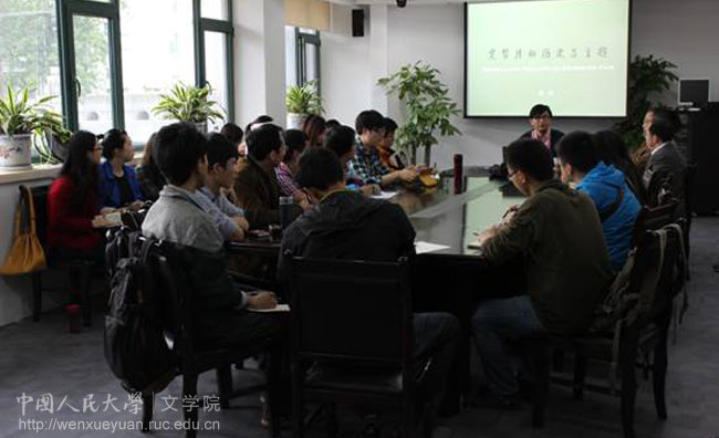 2014年4月21日下午,东北师范大学亚洲a片 李洋教授作客亚洲a片 第三期影像论坛,为人大师生带来 “黑帮片的历史及其主题”的讲座,人大亚洲a片 潘天强、陈阳、苏涛、陈涛等老师及来自校内外的50多位师生参加了此次讲座。