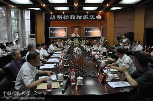 副院长贺阳教授主持,“缅怀胡明扬教授”的短片将与会者带入对胡先生深深的怀念之中。人民大学副校长杨慧林教授致悼念词,他深情回忆了到医院看望胡先生的情景。胡先生即使在病危之际,仍然心系语言学学科可能的发展空间及发展前景。杨慧林副校长说,纪念一位老先生的时候,对他最大的安慰就是把他最关注的事业承继下去,最关注的学术工作延续下去,并尽可能做得更好。