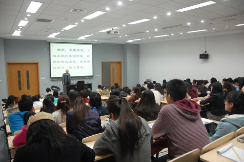 接着,陆教授还谈到读书问题。他告诫师生们要养成读书的习惯,但不能盲从,要学会把书本内容转为为自己脑中的知识,而且这种转化不等于认同,我们要有自己独立的思考。