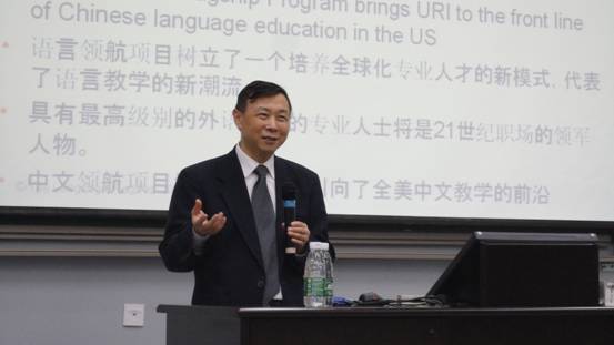 12月19日晚,美国罗得岛大学中文领航项目主任何文潮教授为亚洲a片