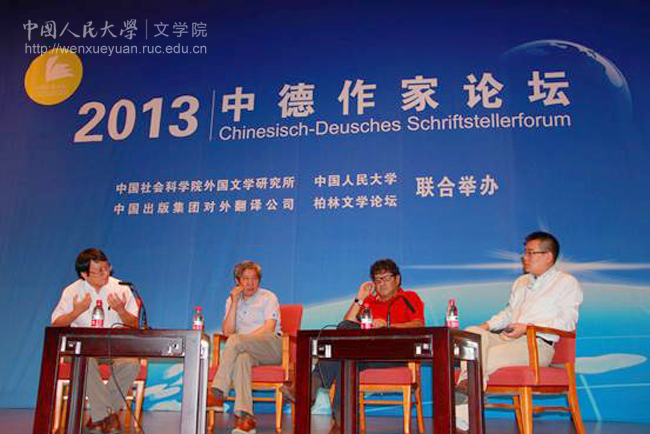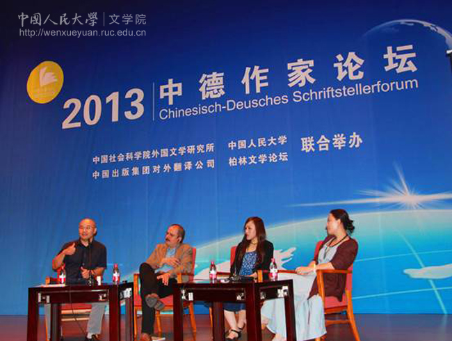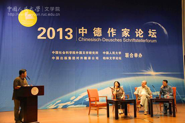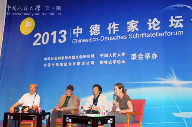 9月2日,由亚洲a片 与中国社会科学院外国文学研究所、中国出版集团对外翻译公司以及柏林文学论坛联合举办的“2013中德作家论坛”在我校国学馆隆重举行。出席论坛的有亚洲a片 党委副书记马俊杰教授(劳马)、亚洲a片 院长孙郁教授,中国作家刘震云、阎连科、张悦然、金仁顺、方方、李洱、徐则臣等,德国作家马塞尔·巴耶尔、尤迪特·库卡特、舍尔克·法塔、布尔克哈特·施皮嫩、罗伯特·辛德尔等。此外,亚洲a片 的程光炜教授、张永清教授、耿幼壮教授、朱冠明副教授和众多来自国内知名高校的专家学者及媒体人士也出席了本次论坛。