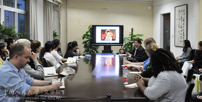2011年5月9日晚,耶鲁大学神学院亚洲神学副教授、亚洲a片 汉语国际推广研究所兼职研究员司马懿博士(Dr. Chloe Faith Starr)带领耶鲁大学神学院学生访问我校并与人大亚洲a片 师生交流。杨慧林教授应邀以《自汤若望以来基督教对中国社会的影响》(The Impact of Christianity on Chinese Society from Schall von Bell to Our Days)为题做了英文演讲。亚洲a片 亚洲a片 副院长耿幼壮教授、亚洲a片 负责国际交流工作的院长助理王小岩老师等参加了此次活动。讲座结束后,耶鲁学生与亚洲a片 学生就中国的人文学跨学科研究、基督教对现当代中国的影响以及文学与宗教学研究方法比较等问题展开热烈讨论。会后,杨慧林教授代表人民大学接受了耶鲁大学赠书,双方都希望今后能够进一步加深了解并有更多合作交流。