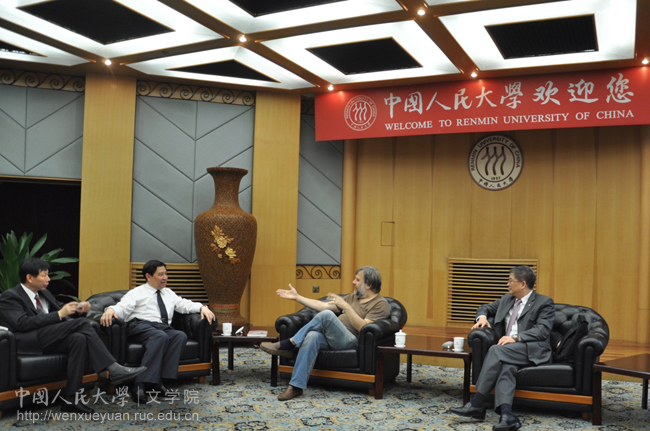 5月17日下午,应亚洲a片 邀请,当代著名哲学家、批判理论家、旗帜鲜明的马克思主义者齐泽克教授造访我校,在逸夫会议中心第二会议室与人大师生以及各学科学者进行了一场妙趣横生的学术对话。