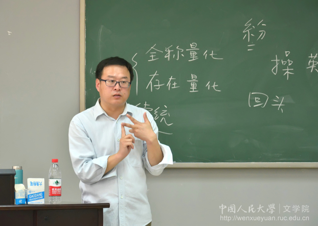 接着,在现代汉语量化方式副词的本体与教学研究方面,董正存老师首先介绍了量化方式副词的概念:此类方式副词的使用会在其上下文出现其所约束的名词性指称集合。然后董正存老师指出了量化方式副词的范围,包括互相、相互、纷纷、陆续、逐一(逐X)、一一、依次(X次)、分别、轮流/轮番等,并从语义、句法结构和教学设计等方面具体讲解了“逐一”这一副词。