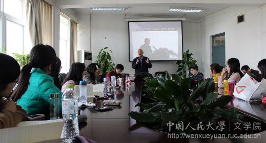 丹•沃尔曼先生先是解释了《力量之谷》的时代背景和摄制过程中的一些具体情况,使同学们更好地理解了影片的文化意涵。接着,他讲述了自己如何走上独立电影创作之路的过程。他决定拍电影的起因是他发现电影是讲故事的最有效的方式,而当时以色列并没有设置电影学专业的高校。于是他来到了美国,白天在餐厅做服务生,夜晚在纽约大学学习。他将对电影的热情化作长久的坚持。他在创作电影的过程中,往往将自己的经历融入进去,因此他的影片在人性刻画方面尤为真实、生动。