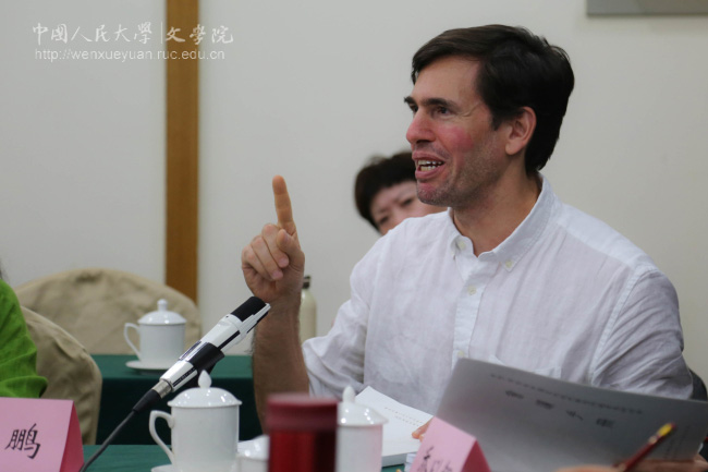 美国杜克大学的副教授罗鹏(Carlos Rojas)作了题为《<鳄鱼手记>与性别之服》的报告,并就“女性”与“性别”两个概念之间的区别与联系等问题同与会学者进行深入探讨。